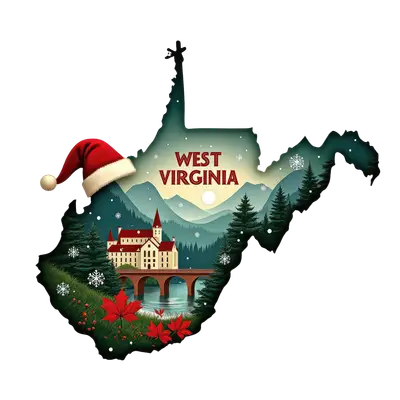 West Virginia Christmas Winter Wonderland DTF Transfer with Santa Hat