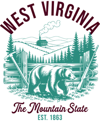 West Virginia Mountain State Bear DTF Transfer - Rustic Outdoors Ready to Press