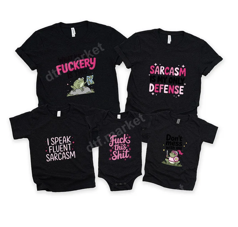 See allThis hilarious DTF transfer features a confused frog alongside the bold, sarcastic text "WHAT KINDOF FUCKERY IS THIS?". The vibrant pink lettering and cartoon frog create an instantly recognizable, humorous statement perfect for those who appreciate adult humor. This ready to press transfer is ideal for adding a witty, edgy touch to any garment, making it a standout piece. It's a fantastic heat press design for expressing relatable bewilderment. This design is perfect for individuals with a bold sense of humor, fans of sarcastic one-liners, or anyone looking to inject playful irreverence into their wardrobe. It makes an excellent gag gift for friends, family, or colleagues who appreciate dark humor and witty commentary. Ideal for casual wear, social gatherings, or simply expressing your mood. Customize your apparel for parties or making a statement. Applying this premium DTF transfer is straightforward. It works beautifully on a wide variety of fabrics, including cotton, polyester, and their blends. For best results, use a heat press at 300-325°F for 15 seconds with medium, even pressure. This heat press ready design also allows for application with a household iron, though results may vary. Unlike vinyl, there's no weeding required, saving you time for a professional finish. Experience exceptional quality with our DTF transfers. Each direct to film transfer boasts incredibly vibrant colors that pop, ensuring your design truly stands out. Our transfers are designed to be crack-resistant and offer a soft-to-touch feel, integrating seamlessly with the fabric. Made with professional-grade DTF film and strong adhesive, these apparel transfers are built for durability and long-lasting wear, maintaining their integrity wash after wash.