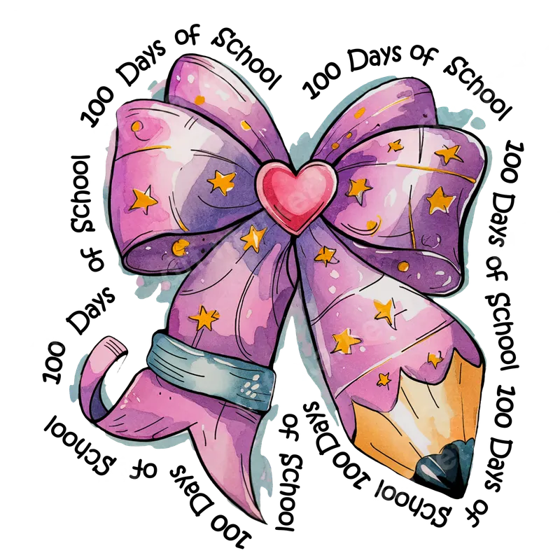 Whimsical 100 Days of School Bow & Pencil DTF Transfer | Teacher Student