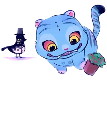 Whimsical Blue Cat & Dapper Bird DTF Transfer | Ready To Press Design