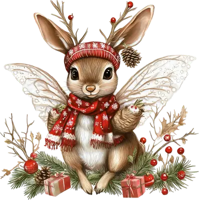 Whimsical Christmas Bunny Fairy Antlers DTF Transfer