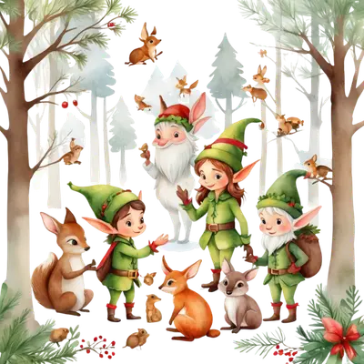 Whimsical Christmas Elves & Woodland Animals DTF Transfer Festive Scene