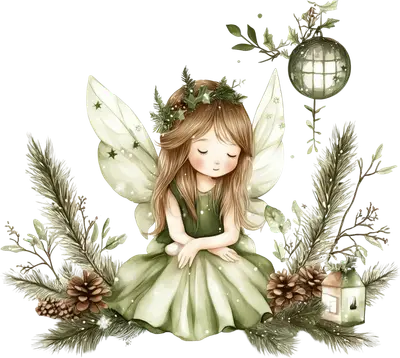 Whimsical Christmas Fairy DTF Transfer Pinecone Holly Winter