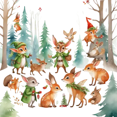 Whimsical Christmas Forest Animals DTF Transfer | Holiday Deer & Elves