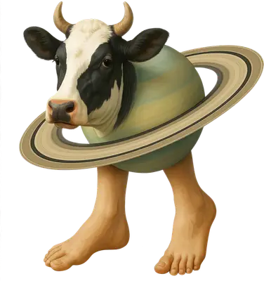 Whimsical Cow Head Saturn Planet Human Feet DTF Transfer