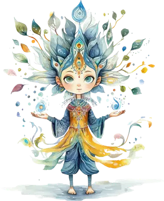 Whimsical Elemental Spirit Child DTF Transfer | Nature Magic Design
