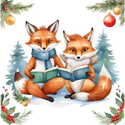 Whimsical Foxes Reading Books Christmas DTF Transfer | Winter Holiday Apparel