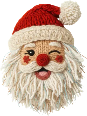 Whimsical Knitted Santa Claus Face DTF Transfer for Christmas Apparel