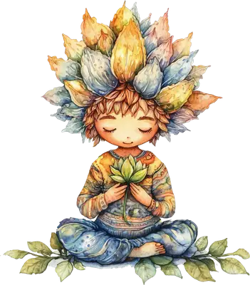 Whimsical Meditating Nature Spirit DTF Transfer with Lotus Flower