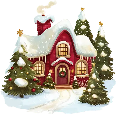 Whimsical Snowy Christmas Cottage DTF Transfer | Festive Red House Design
