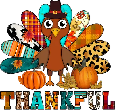 Whimsical Thankful Turkey DTF Transfer with Fall Patterns