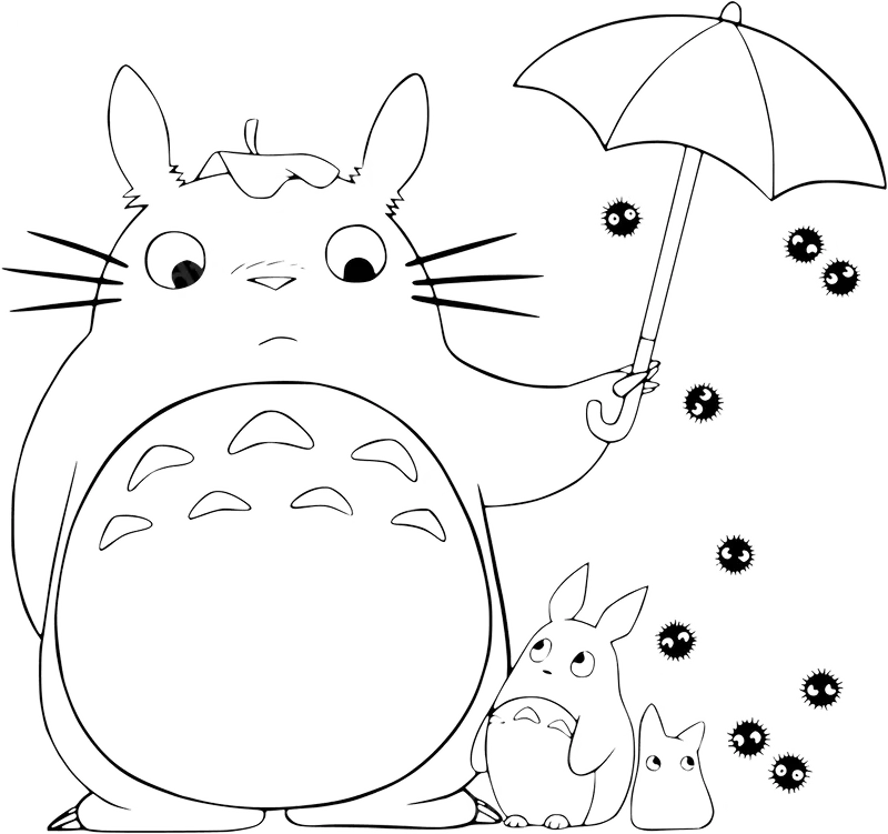 Whimsical Totoro, Soot Sprites & Umbrella DTF Transfer Anime Design