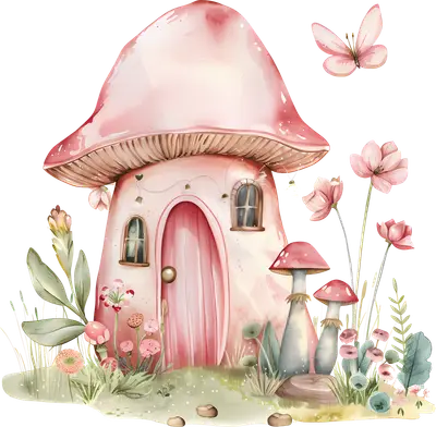 Whimsical Watercolor Mushroom House DTF Transfer | Fairy Garden Design