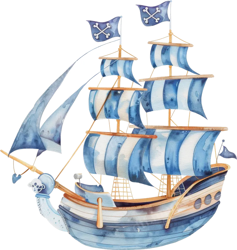 Whimsical Watercolor Pirate Ship DTF Transfer - Ready to Press Apparel Design