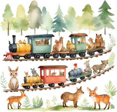 Whimsical Watercolor Woodland Animals Train DTF Transfer