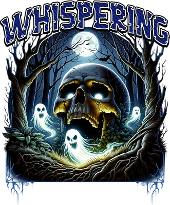 Whispering Skull & Ghosts DTF Transfer | Spooky Forest Halloween Design