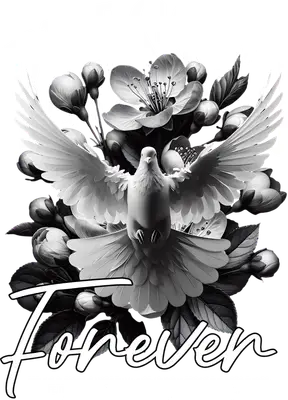 White Dove & Grayscale Floral 'Forever' DTF Transfer