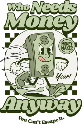 Who Needs Money Anyway Cartoon DTF Transfer | Funny Retro Money Maker Design