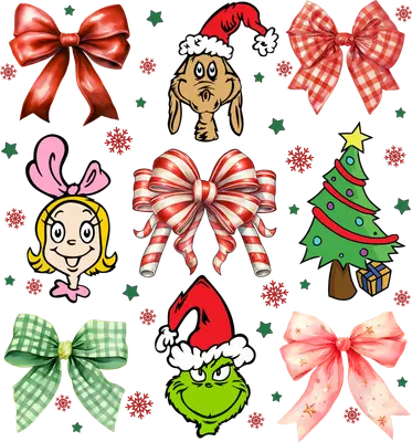 Whoville Grinch & Friends Christmas Bows DTF Transfer