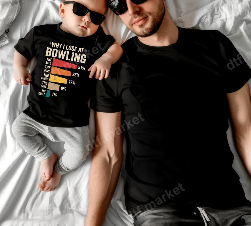 See allThis hilarious DTF transfer features a witty bar chart explaining "Why I Lose at Bowling." The design humorously attributes 51% blame to the ball, 25% to the pins, 17% to the shoes, 6% to the lane, and only 1% to "my fault." With its vintage-inspired color palette, this ready to press design is perfect for anyone who loves bowling but isn't afraid to poke fun at their game. This funny DTF transfer is ideal for casual bowlers, bowling league members, dads, and anyone with a good sense of humor. It makes a fantastic gift for Father's Day, birthdays, or just a fun surprise for a bowling enthusiast. Create custom t-shirts for your bowling team or surprise a friend with a unique iron on transfer for their next game night. Our premium direct to film transfer works seamlessly with all fabric types, including cotton, polyester, and blends. Achieve professional results using a heat press set between 300-325°F for 15 seconds with medium, even pressure. This heat transfer can also be applied with a household iron, providing versatility for all crafters. Best of all, there's no weeding required! Experience vibrant, long-lasting results with our high-quality DTF transfers. These heat press ready designs are engineered for durability, offering excellent stretch, crack resistance, and a soft, lightweight feel on any garment. Each apparel transfer uses professional-grade DTF film and strong adhesive, ensuring your custom creations look fantastic wash after wash.
