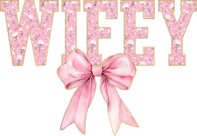 Wifey Pink Floral DTF Transfer with Glitter Bow | Ready to Press