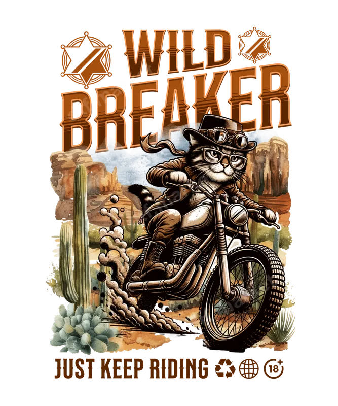 Wild Breaker Biker Cat DTF Transfer - Desert Motorcycle Ride