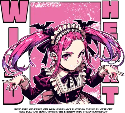 Wild Heart Anime Girl DTF Transfer | Gothic Maid Pink Hair Bats