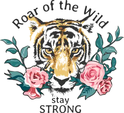Wild Tiger Roar Floral DTF Transfer | Stay Strong Empowering Design