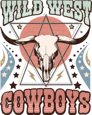 Wild West Cowboys Bull Skull Retro DTF Transfer