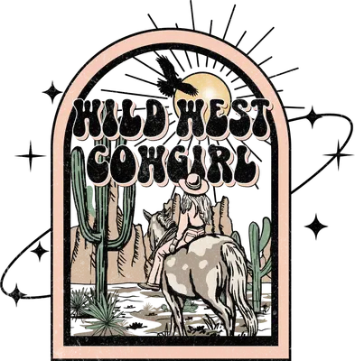 See allCapture the spirit of the open range with our captivating Wild West Cowgirl DTF transfer. This vintage-inspired design features a lone cowgirl on horseback, journeying through a serene desert landscape adorned with majestic saguaro cacti and distant mountains under a radiant sun. An eagle soars overhead, adding to the free-spirited vibe. The phrase "WILD WEST COWGIRL" is set in a charming, groovy retro font, framed by an elegant arch with sparkling accents, making it a perfect ready to press design for any western enthusiast. This unique iron on transfer is ideal for anyone who loves country music, bohemian aesthetics, or classic western Americana. It’s perfect for creating custom apparel for country concerts, rodeo events, summer festivals, or simply adding a touch of rugged charm to everyday wear. Small boutique owners, Etsy t-shirt sellers, and DIY crafters will find this heat transfer design an excellent addition to their product line or personal projects, offering a popular and stylish theme that resonates with a broad audience. Applying this heat press transfer is incredibly simple, making it perfect for both beginners and seasoned crafters. It adheres beautifully to cotton, polyester, cotton-poly blends, and even nylon fabrics. Use a heat press at 300-325°F for 15 seconds with medium pressure, or follow instructions for a household iron. There’s no tricky weeding required – just peel and press! Create custom t-shirts, cozy hoodies, sturdy tote bags, stylish denim jackets, or even decorative pillow covers with ease. For lasting durability, simply wash garments inside out and tumble dry low. Experience premium quality with this ready to press transfer, showcasing vibrant, full-color printing with exceptional detail that truly brings the western scene to life. Our transfers are crack-resistant and boast a soft, lightweight feel, avoiding the heavy texture often associated with vinyl. Each direct to film transfer is meticulously printed on high-grade DTF film with a robust adhesive backing, ensuring professional-grade results that stand the test of time and wash cycles.