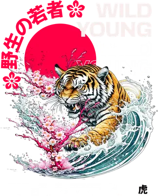 Wild Young Tiger Wave Cherry Blossom DTF Transfer