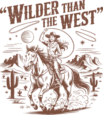 Wilder Than The West Cowgirl DTF Transfer - Horse Lasso Desert Design