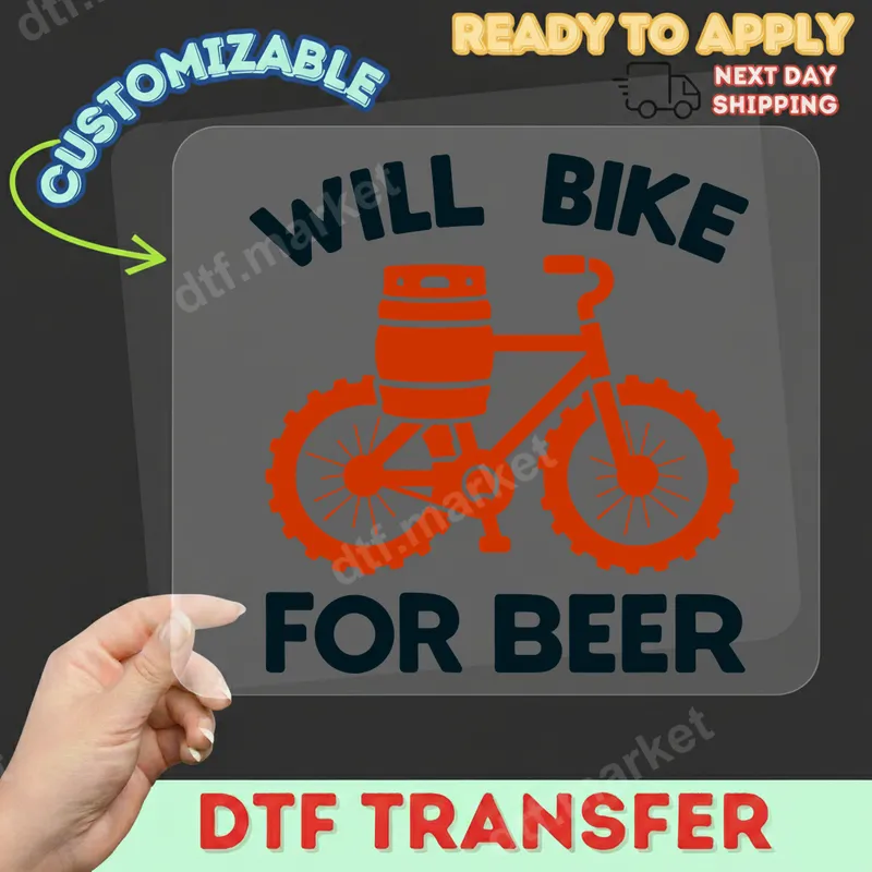 Will Bike For Beer DTF Transfer | Funny Cycling & Drinking Heat Press Design