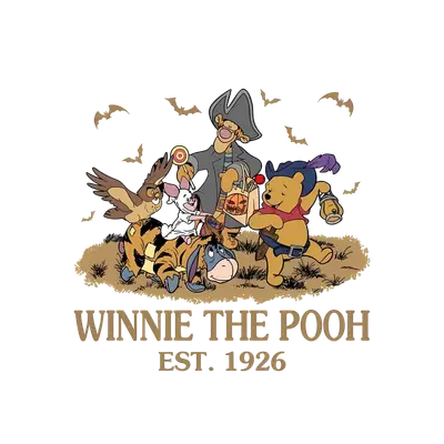 See allStep into the Hundred Acre Wood for a nostalgic Halloween with this delightful **DTF transfer**! This charming design features classic Winnie the Pooh characters – Pooh as a swashbuckling pirate, Piglet as a friendly ghost, Tigger, Eeyore, and Owl – all gathered for a fun trick-or-treating adventure. Bats flutter above, adding to the festive atmosphere, while the text "WINNIE THE POOH EST. 1926" highlights the timeless appeal of these beloved characters. It's a fantastic, ready-to-press transfer that captures the heartwarming and slightly spooky vibe of autumn. This adorable **iron on transfer** is perfect for Disney enthusiasts, Winnie the Pooh fans, crafters, and small business owners looking to add a touch of vintage charm to their Halloween merchandise. Create matching family Halloween outfits, a special gift for a child or adult who loves Pooh, or unique apparel for fall festivals. It's also ideal for adding a personalized, nostalgic touch to seasonal decor or party favors for a Halloween gathering, celebrating the enduring magic of A.A. Milne's creations. Our versatile **heat press transfer** works beautifully on a wide range of materials, including cotton, polyester, cotton-poly blends, and even nylon. Application is simple and quick: use a heat press at 300-325°F for 15 seconds with medium pressure, or apply with a household iron. There's no tedious weeding required—simply peel and press for instant results! This design is perfect for **custom t-shirts**, cozy hoodies, sweatshirts, durable tote bags, charming baby onesies, aprons, and even denim jackets. For long-lasting wear, wash garments inside out and tumble dry on low. Experience exceptional quality with this **ready to press transfer** featuring vibrant, full-color printing and intricate details that truly bring the characters to life. The design is crack-resistant and boasts a soft, lightweight feel, unlike heavy vinyl. Each **direct to film transfer** is meticulously printed on premium DTF film with a strong, reliable adhesive backing, ensuring professional-grade results and durability for every project you create.