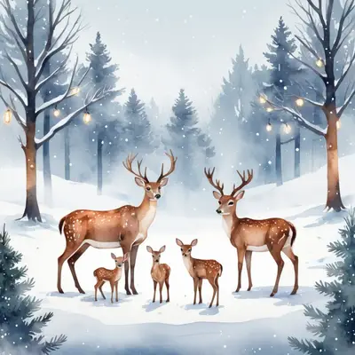 Winter Deer Family Watercolor DTF Transfer