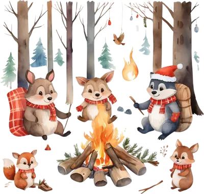 Winter Woodland Animals Campfire DTF Transfer