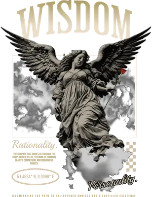 This exquisite DTF transfer features a neoclassical angel statue with grand, feathered wings, holding a single vibrant red rose. Set against a backdrop of dramatic, swirling clouds and a modern checkered pattern, the design is crowned with the bold text "WISDOM" and includes philosophical quotes like "Rationality." and "Personality.". It’s a true ready to press masterpiece, blending classical art with contemporary graphic elements for a profound aesthetic. Perfect for those who appreciate art, philosophy, and unique streetwear fashion, this aesthetic heat transfer design is ideal for art enthusiasts, philosophy students, deep thinkers, and individuals seeking to express their intellectual side. This unique iron on transfer makes an excellent gift for thoughtful friends, family, or anyone who values meaningful, artistic apparel for everyday wear or special occasions. Applying this premium heat press transfer is simple and efficient. It adheres beautifully to cotton, polyester, cotton-poly blends, and even nylon fabrics. Simply use a heat press at 300-325°F for 15 seconds with medium pressure, or apply with a household iron. No tedious weeding required—just peel and press. It's perfect for custom t-shirts, hoodies, sweatshirts, tote bags, denim jackets, and even pillow covers, offering endless possibilities for personalized creations. Our ready to press transfer ensures vibrant, full-color printing with exceptional detail, capturing every nuance of the angelic figure and intricate typography. It’s crack-resistant and soft to the touch, providing a comfortable wear without the heavy feel of traditional vinyl. Each direct to film transfer is produced on high-quality DTF film with a strong, reliable adhesive backing, guaranteeing professional, long-lasting results for all your apparel and accessory projects.
