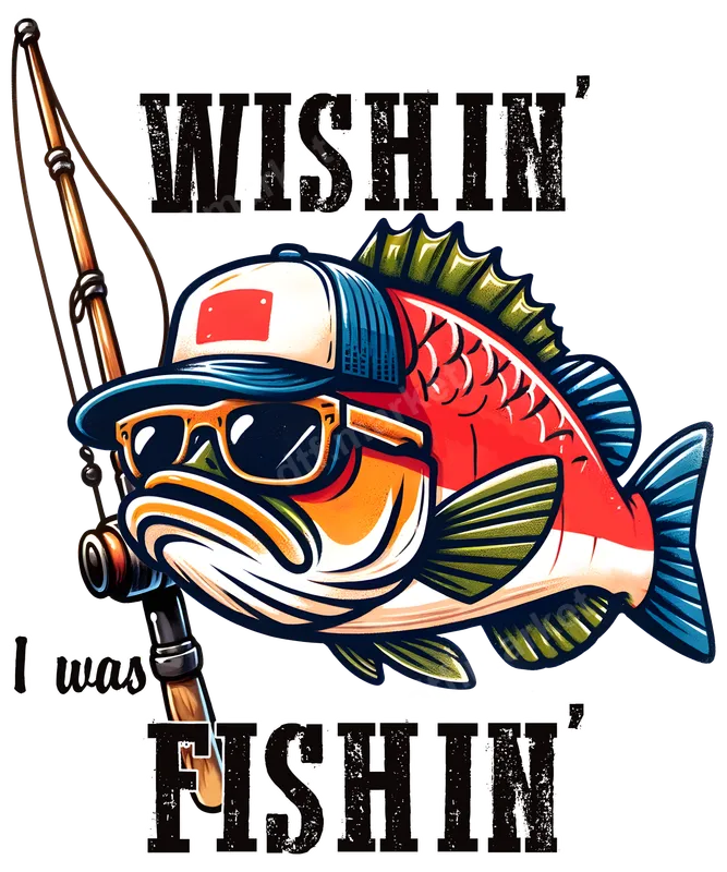 See allDive into the fishing spirit with this vibrant 'Wishin' I was Fishin'' DTF transfer. This playful design features a cool, cartoon-style bass fish sporting a classic baseball cap and stylish sunglasses, confidently holding a fishing rod. The distressed, bold lettering perfectly captures the longing for a relaxing day on the water. This eye-catching direct to film transfer is ready to press onto your favorite apparel. This ready to press heat transfer is perfect for avid fishermen, outdoor enthusiasts, and anyone who loves a good fishing pun. It makes an excellent gift for Father's Day, birthdays, or fishing trips. Imagine it on a shirt for a fishing buddy, a hat for your grandpa, or a tote bag for your next lake adventure. Show off your passion for angling with this fun heat press design. Applying this apparel transfer is incredibly easy, whether you use a professional heat press or a household iron. For best results with a heat press, apply at 300-325°F for 15 seconds with medium pressure. This high-quality iron on decal adheres beautifully to cotton, polyester, and most fabric blends. Forget about tedious weeding; our DTF transfers provide crisp, clean results with minimal effort. Experience superior quality with our professional-grade DTF transfers. Each iron on transfer boasts vibrant colors, excellent wash durability, and a soft-to-touch feel that won't crack or peel. Our specialized DTF film ensures strong adhesion and a long-lasting finish, maintaining its pristine look. Elevate your wardrobe or create personalized gifts with confidence using this top-tier heat press ready design.