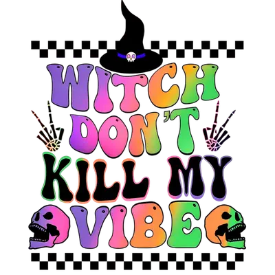 Witch Don't Kill My Vibe Groovy DTF Transfer | Retro Halloween Skull Design