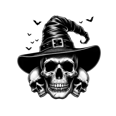 Witch Hat Skull Trio with Bats DTF Transfer Halloween Design