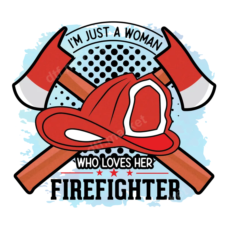 See allThis vibrant DTF transfer proudly features the phrase "I'm Just A Woman Who Loves Her Firefighter," beautifully framed by classic firefighter iconography. The design showcases a bold red fire helmet centrally placed, with two crossed axes behind it, all set against a subtle blue watercolor and halftone background. This ready to press design is perfect for anyone wanting to express their admiration and support for the brave men and women of the fire service. This powerful heat transfer is ideal for firefighter wives, girlfriends, mothers, or any woman who supports a loved one in the fire department. It makes a thoughtful gift for birthdays, anniversaries, Mother's Day, or just to show everyday pride. Wear it to fire department events, community gatherings, or as a daily declaration of your unwavering support for your hero. Our high-quality DTF (Direct-to-Film) transfers ensure a smooth application process. This iron on transfer works seamlessly on a wide variety of fabrics, including cotton, polyester, and their blends. For best results, use a heat press at 300-325°F for 15 seconds with medium pressure. It can also be applied with a household iron. Best of all, there's no weeding required, making custom apparel creation quick and effortless. Experience superior quality with our professional-grade apparel transfer. The colors are incredibly vibrant and remain true, wash after wash, ensuring your design stands out. These transfers are designed to be crack-resistant and offer a soft, flexible feel on your garment. Crafted with durable DTF film and a strong adhesive, your finished product will look fantastic and last for years to come.