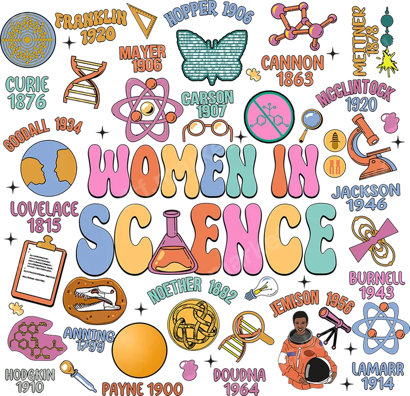 Women in Science Retro DTF Transfer - STEM Heroes Ready to Press Design
