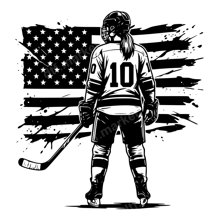 Women's Hockey Player #10 USA Flag DTF Transfer Ready to Press