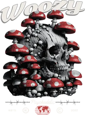 Dive into a surreal blend of nature and the macabre with our Woozy Psychedelic Mushroom Skull DTF transfer. This striking design features a weathered grayscale skull overgrown with an array of vibrant red and white spotted mushrooms, complemented by smaller fungi clusters. Above, the whimsical 'Woozy' text sets a dreamy, altered tone, while 'Psychedelic' at the base reinforces its trippy aesthetic. This intricately detailed DTF transfer is ready to press, offering a unique artistic statement for any garment. This design is perfect for alternative fashion enthusiasts, festival-goers, streetwear brands, and those who appreciate gothic and psychedelic art. It's an ideal choice for creating unique apparel for music concerts, art festivals, Halloween parties, or as a distinctive everyday statement piece. Small t-shirt businesses and crafters looking for an edgy iron on transfer will find this design particularly appealing for their inventory or custom projects, offering a fresh take on skull art. Applying this heat press transfer is straightforward, working beautifully on cotton, polyester, cotton-poly blends, and even nylon. Achieve professional results with a heat press (300-325°F for 15 seconds with medium pressure) or a household iron. Forget tedious weeding; this heat press design is ready to peel and press directly onto your chosen item. It's perfect for custom t-shirts, hoodies, sweatshirts, tote bags, denim jackets, and even pillow covers. For lasting durability, simply wash inside out and tumble dry low. Experience premium quality with this ready to press transfer, showcasing vibrant, full-color printing and exceptional fine detail that captures every nuance of the mushroom-skull artwork. Our direct to film transfer technology ensures a crack-resistant finish that feels soft to the touch, without the heavy, stiff feel often associated with vinyl. Each apparel transfer is printed on high-grade DTF film with a strong adhesive backing, guaranteeing a professional and enduring application every time.