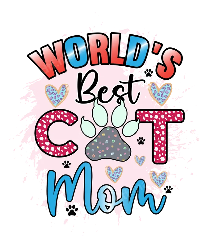 World's Best Cat Mom DTF Transfer | Cute Paw Print Heat Press Design