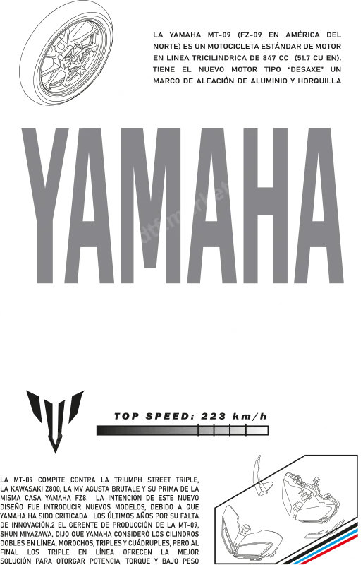 Yamaha MT-09 Motorcycle Bike Specs DTF Ready To Press Transfer