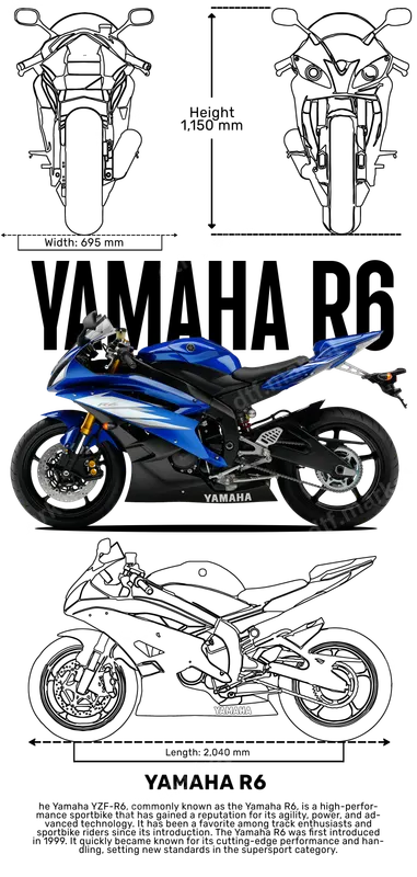 Yamaha R6 Sportbike Blue Motorcycle DTF Transfer