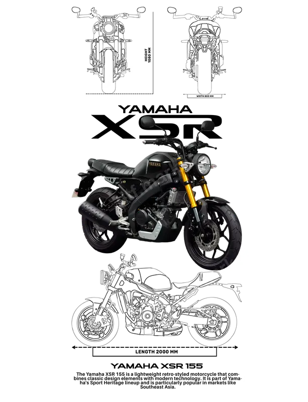 Yamaha XSR 155 Motorcycle DTF Transfer - Retro Sport Heritage Bike Design
