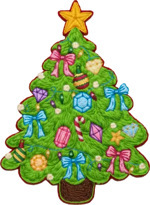 Yarn Knitted Christmas Tree DTF Transfer with Jewels & Bows